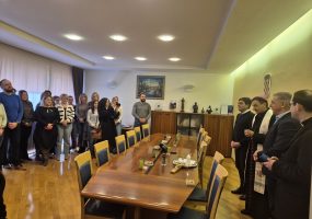 Objavljeno: 29/01/2026GOSPIĆ- U prostorijama Gradske uprave Grada Gospića upriličen je blagoslov zaposlenika i radnih prostora, koji je predvodio gospićko-senjski biskup mons. Marko Medo, u pratnji kancelara Mišela Grgurića. Blagoslovu su nazočili gradonačelnik Grada Gospića Darko Milinović, njegov zamjenik Ivica Kovačević, pročelnici upravnih odjela te djelatnici Gradske uprave. U prigodnoj propovijedi biskup Medo uputio je riječi zahvale gradonačelniku i njegovu zamjeniku na dosadašnjoj izvrsnoj suradnji, istaknuvši kako su vrata Biskupijskog ordinarijata uvijek otvorena za svaki oblik pomoći, dijaloga i zajedničkog djelovanja na dobrobit zajednice. Osvrnuvši se na značenje blagoslova, biskup je naglasio važnost zahvalnosti za sve ono što imamo, ističući vrijednosti skromnosti, jednostavnosti i poniznosti, kao i važnost iskrenih i poniznih međuljudskih odnosa u svakodnevnom radu i životu. Na kraju susreta zazvao je Božji blagoslov na sve djelatnike Gradske uprave Grada Gospića, uz želju da nova godina donese mir, zdravlje, uspjeh u radu te obilje Božje milosti u osobnom i zajedničkom djelovanju.