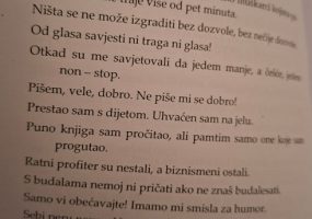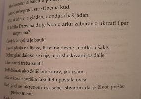 U zborniku koji pršti kratkim, jezgrovitim, iskričavim i dalekometnim mislima zastupljeno je 89 autora iz Srbije, Hrvatske, B i H, Crne Gore i Sjeverne Makedonije, a Hrvatsku su predstavili: Ivo Mijo Andrić iz Zagreba, Zoran Bašić iz Imotskoga, Boris Nazansky iz Rijeke, Dražen Jergović iz Zagreba, Aljoša Vuković iz Šibenika, Nikolina Šimić Tonin iz Zadra, Darko Žigrović iz Svetog Ivana Zeline i naravno velemajstor kratke forme, gospićki književnik, pjesnik i aforist Danko Ivšinović, čiji vam čiji vam književni uradak donosimo u cijelosti:
