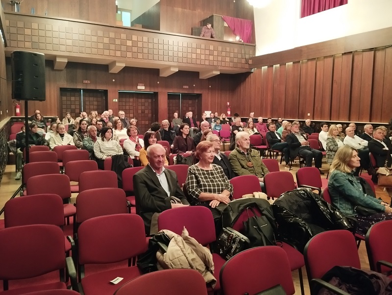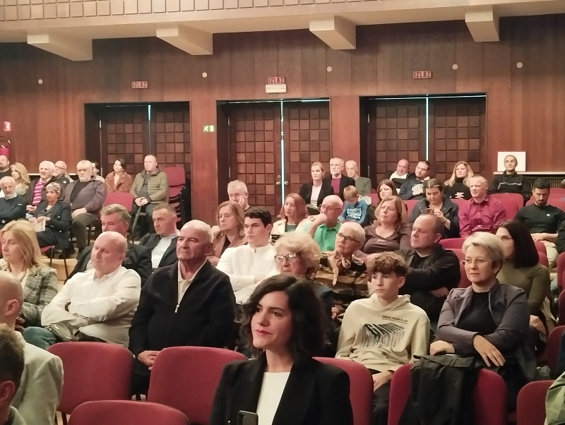 Objavljeno: 21/10/2025GOSPIĆ- Kada mu je sin Ivan rekao da je sad na vrhu aforističke scene i da bi bilo vrijeme da se okuša u nečemu drugome Danko Ivšinović odlučio je objaviti svoju prvu knjigu poezije. Objavio je, i večeras predstavio, “Poeziju u c-duru”, njegov poetski početak koji baš kao u glazbi i nosi naziv po c-duru koji se najprije i uči. Danku Ivšinviću su posebno važni religija, domoljublje i upravo obitelj pa ga je sin Ivan nagovorio da se barem nakratko makne od aforizama, drugi sin Josip mu radi računalne pripreme za objavu knjiga, a kćerka Ana se molila da sve prođe dobro. Najveći teret naravno podnijela je njegova supruga. Danko Ivšinović jedan je on najnagrađivanijih aforističara ne samo u Hrvatskoj nego i šire. O njemu je na predstavljanju ove knjige jako lijepo govorila i Jasmina Brala Mudrovčić koja je istaknula da je obogatio satirično i humoristično stvaralaštvo u Hrvatskoj, te da je u vrhu piramide među hrvatskim aforističarima. Akademik Anto Matić kao svojedobni urednik u Večernjem listu uvijek je rado čitao Ivšinovića,a Dankove aforizme volio je i jedan od najvećih hrvatskih novinara Milan Ivkošić. Danko Ivšinović izletom u poeziju možda je izišao iz zone komfora svog aforističkog stvaralaštva,ali i u njegovoj poeziji vide se iskrice aforistike. Na ovoj promociji u Pučkom otvorenom učilištu Ivšinoviće pjesme čitali su Goranka Erega i Damir Mesić,a naravno da se moglo uživati i u njegovoj velikoj ljubavi, glazbi. Naime događaj su uveličali gradski zbor Vile Velebita i Ivšinovićev glazbeni učenik Karlo Cajnko. Danko Ivšinović tijekom predstavljanja knjige iznio je i jako zanimljiv prijedlog da se jedna ulica u Gospiću nazove po njegovom aforističkom kolegi i velikom gospićkom umjetniku Stipi Golcu.