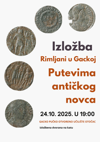Objavljeno: 07/10/2025OTOČAC- „Rimljani u Gackoj: Putevima antičkog novca“ naziv je izložbe koja će biti otvorena u Muzeju Gacke pri Gackom pučkom otvorenom učilištu Otočac u petak, 24. listopada 2025. godine u 19 sati. Izložba se bavi razdobljem antike tijekom kojeg je Gacka bila dio Rimskog Carstva, a Rimljani su na ovom prostoru ostavili brojne tragove sačuvane i dandanas. Osim ostataka rimskog kamenoloma i svetišta posvećenih bogu Mitri o boravku Rimljana u Gackoj svjedoči i rimski novac.Oko 200 antičkih novčića sačuvano je u numizmatičkoj zbirci Muzeja Gacke, a izdvojeni primjerci novca iz 3. i 4. stoljeća bit će predstavljani na ovoj izložbi. Izložba ne donosi samo priču o antičkom novcu, već i o rimskim carevima, materijalima od kojih je novac izrađen, kovnicama i putevima kojima je novac dolazio do Gacke i putovao Rimskim Carstvom. Izložba će biti otvorena u izložbenoj dvorani na katu Gackoga pučkog otvorenog učilišta Otočac, a ostaje otvorena do 10. prosinca 2025. godine.