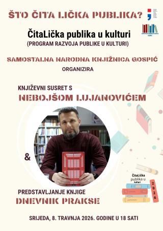 Objavljeno: 03/04/2026Samostalna narodna knjižnica Gospić organizira književni susret s Nebojšom Lujanovićem u sklopu programa ČitaLička publika u kulturi.