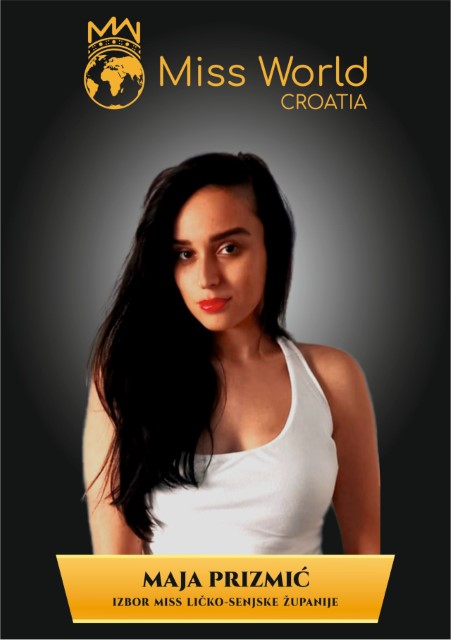 - MAJA PRIZMIĆ -Ima 20 godina, dolazi iz Senja i visoka je 173 centimetara. Završila je opću gimnaziju, a u Njemačkoj je stekla zvanje wellness terapeuta. Maja se natječe s ciljem da promovira ljepote i bogatu tradiciju svoje Ličko-senjske županije. Aktivno se bavila rukometom i plivanjem, a slobodno vrijeme najradije provodi u prirodi i bavi se slikarstvom, što joj je dugogodišnji hobi. Govori njemački, talijanski i engleski jezik.