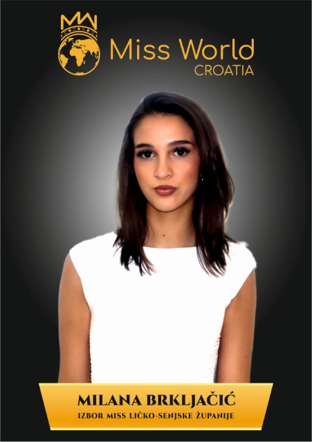 - MILANA BRKLJAČIĆ -Ima 17 godina, dolazi iz Gospića i visoka je 178 centimetara. Učenica je srednje Medicinske škole, no velika joj je želja upisati Pravni fakultet. Milana je energična i samopouzdana osoba koja teži novim izazovima i želi se baviti modelingom. Aktivna je volonterka Crvenog križa jer vjeruje da osmijeh i pozitivna energija mogu uljepšati svaki dan. U slobodno vrijeme svira klarinet u Puhačkom orkestru grada Gospića te aktivno trenira. Govori engleski i njemački jezik.