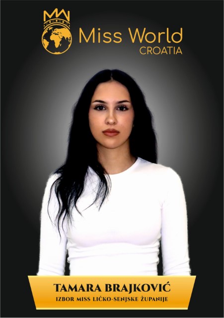 - TAMARA BRAJKOVIĆ -Ima 20 godina, dolazi iz Štikade (općina Lovinac) i visoka je 170 centimetara. Završila je srednju strukovnu školu u Gospiću. Tamara je ljubiteljica psihologije, šminkanja i stvaranja sadržaja za društvene mreže. Opisuje se kao pristupačna, otvorena i empatična osoba. U životu je motivira želja da ostvari svoje ciljeve i učini roditelje ponosnima. San joj je postati model, iz čega proizlazi i njen moto: “Trud je put do snova.” Govori engleski jezik.