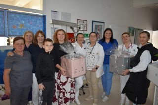 Objavljeno: 08/10/2025GOSPIĆ- Lijepa tradicija nastavljena je i ove godine u sklopu obilježavanja Dječjeg tjedna. Naime već godinama, kažu sudionice 10 godina, Društvo Naša djeca grada Gospića dariva Dječji odjel opće bolnice Gospić. Takav jubilej zaslužio je i tortu s kojom su se počastili svi sudionici ovog događaja. Ove godine predsjednica Društva Naša djeca grada Gospića Sanja Puškarić Delač i članica društva Tamara Ban posjetile su Dječji odjel Opće bolnice Gospić i donijele ručnike, novo sušilo za kosu, odjeću za djecu i ukrasne kutije, a kako pojašnjava Sanja Puškarić Delač to je i ovaj put bilo u dogovoru s glavnom sestrom odjela kako bi im poklonili ono što im je i najpotrebnije. Zajedno sa svojim kolegama, osobljem odjela poklone je preuzela voditeljica Odjela pedijatrica, dr.Linda Hibravi Kosić, koja se DND-u zahvalila na posjeti i na darovima. Ističe da im je uvijek drago ugostiti članove Društva jer uvijek razvesele i zaposlenike Odjela, ali posebno i dječicu koja koristi usluge Odjela.
