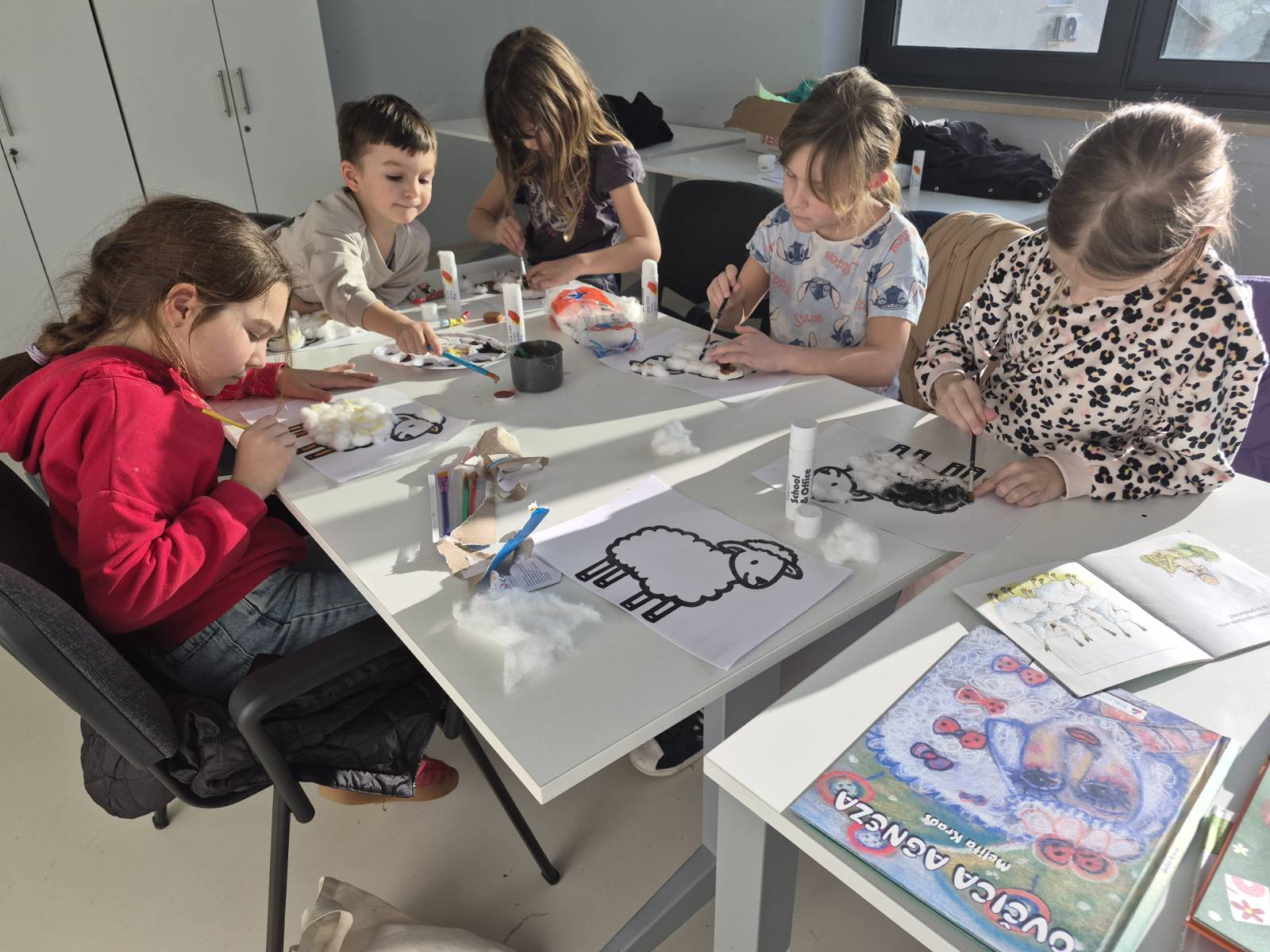 Nakon uvodnog razgovora pročitano je nekoliko zanimljivih priča o ovčicama, čime je djeci dodatno približena tema radionice. Tek tada uslijedio je kreativni dio u kojem su mali sudionici dobili isprintane predloške ovčica, na koje su lijepili pamuk, a potom ih oslikavali temperama. Rezultat su bile različite, šarene, razigrane i posve osobne ovčice, a djeca su im, s velikim veseljem, dala i imena.