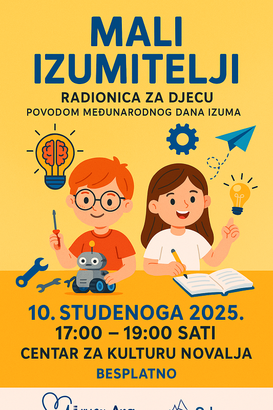 U povodu Međunarodnog dana izuma, Udruga Ana priprema za djecu Novalje veselu i poučnu radionicu „Mali izumitelji“, na kojoj će najmlađi sudionici istraživati svijet ideja, rješenja i kreativnih pronalazaka. ⚙️🧠