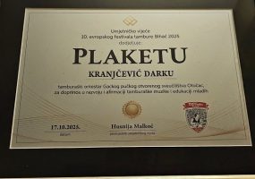Umjetničko vijeće festivala prepoznalo je rad našeg orkestra te je dodijelilo plaketu Darku Kranjčeviću, voditelju tamburaškog orkestra i predavaču tambure u Učilištu, za doprinos u razvoju i afirmaciji tamburaške glazbe i edukaciji mladih.