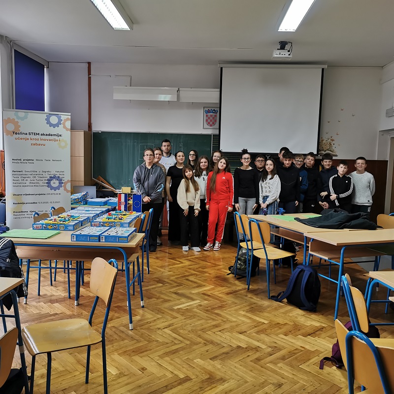 Objavljeno: 23/01/2026GOSPIĆ- U sklopu projekta Teslina STEM akademija, koji provodi Udruga Nikola Tesla Network – Mreža Nikola Tesla, u Osnovnoj školi dr. Jure Turića u Gospiću od 20. do 22. siječnja, održan je ciklus edukativnih radionica namijenjenih djeci osnovnoškolske dobi. Tijekom tri dana provedeno je osam radionica s ciljem popularizacije znanosti i tehnologije te poticanja interesa djece za STEM područje. Radionice su obuhvatile teme elektromagnetizma i njegove primjene u tehnici, robotike, optike te izrade Mini Tesla zavojnice. Djeca su kroz praktičan rad imala priliku upoznati osnovne znanstvene principe, razvijati logičko razmišljanje, tehničke vještine i timski rad, ali i učiti kroz igru i eksperimente. Radionice su provedene u pozitivnoj i poticajnoj atmosferi, a interes i angažman učenika još jednom su potvrdili koliko je važno djeci približiti znanstvene teme na razumljiv i zanimljiv način.
