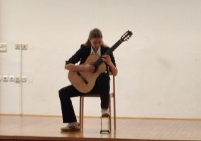 Na natjecanju, koje je okupilo mlade gitariste iz različitih zemalja, Lucija se istaknula tehničkom preciznošću, muzikalnošću i zrelim interpretacijama zahtjevnog programa. Izvela je klasične skladbe uglednih skladatelja: M. D. Pujola, L. Brouwera, J. Pernambuca i S. Fumića, demonstrirajući širok raspon tehničkih vještina, izražajnosti i stilskog razumijevanja klasične glazbe. Ovaj uspjeh predstavlja velik ponos za njezinu školu i učitelje, ali i snažan poticaj za daljnji razvoj njezinog glazbenog puta. Uz kontinuiranu podršku glazbene škole Lucija već sada pokazuje potencijal za iznimnu karijeru, a do sada je već osvojila 4 zlata i 2 srebra na državnim i međunarodnim natjecanjima u Hrvatskoj, Sloveniji i Italiji. Trenutno se priprema za još jedno međunarodno natjecanje koje će se održati u svibnju. Luciji želimo svu sreću i na idućem natjecanju!