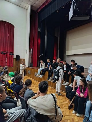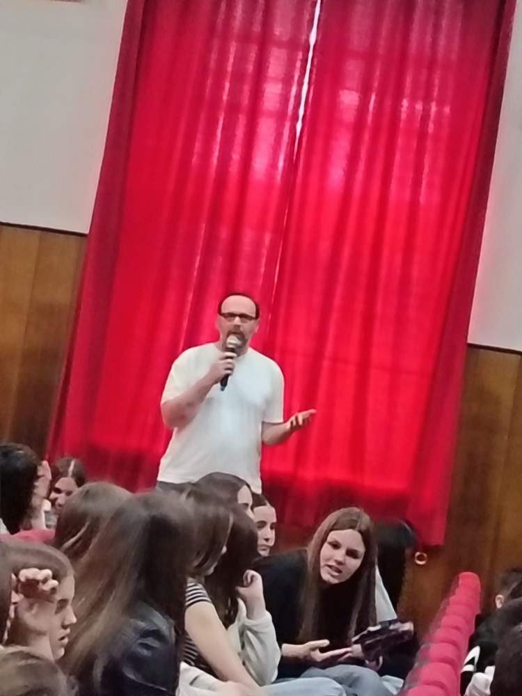 Objavljeno: 23/04/2026Učenici 6.7. i 8. razreda OŠ „Dr. Jure Turić“ Gospić sudjelovali su u projektu TEATRA ZA MLADE „BARAKUDA“ , ZAGREB- DRUGAČIJI A ISTI – ONO ŠTO SE NE VIDI koji obuhvaća monodramu „MAKNITE SE IDE DEBELI“ i razgovornu tribinu u sklopu preventivnog programa za Osnovne škole.