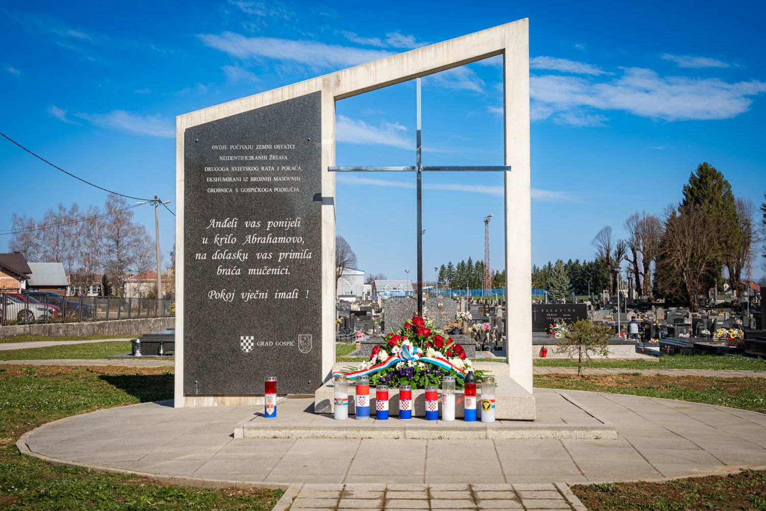 Objavljeno: 04/04/2026Polaganjem vijenaca i paljenjem svijeća kod Zajedničke grobnice za žrtve Drugog svjetskog rata i poraća te kod Spomen-ploče hrvatskim mučenicima, danas je u Gospiću održana komemoracija u spomen na sve nedužne žrtve stradale u travnju 1945. godine.
