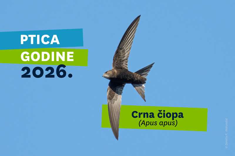 Zagreb, 24. studenog 2025. – U sada već tradicionalnom izboru za Pticu godine, koji je organizirala Udruga Biom u suradnji s Hrvatskim društvom za zaštitu ptica i prirode, titulu za 2026. godinu osvojila je crna čiopa (Apus apus)! Uz potporu 40,4% glasova u javnom glasovanju putem web-stranice Udruge Biom, ova dobro znana stanovnica naših priobalnih i kontinentalnih gradova nadmašila je druge finaliste – morskog vranca (32,3%) i žličarku (27,3%). Glasovanje je održano od 14. studenog do 24. studenog 2025., a ovom prilikom u izboru je sudjelovalo više od tisuću ljubitelja ptica. Izbor za Pticu godine osmišljen je s ciljem podizanja svijesti o pticama koje su ugrožene ili suočene s izazovima očuvanja, kao i s ciljem očuvanja njihovih staništa. Svaka od nominiranih ptica suočava se s određenim negativnim učincima ljudskog djelovanja. “Iznimno nam je drago da je upravo crna čiopa Ptica 2026. godine budući posljednjih nekoliko godina provodimo aktivnosti posvećene njenom očuvanju u našim gradovima. To je i vrsta u čijem očuvanju mogu sudjelovati baš svi, a zahtjeva koordinirane aktivnosti građana i sektora zaštite prirode, te kulture kao i građevinskog sektora. Do sada su se naši napori za očuvanje čiopa provodili kroz projekte sufinancirane sredstvima Grada Dubrovnika, a čiji je cilj zaustaviti negativan trend brojnosti njihovih populacija u tom gradu”, izjavio je ornitolog Dubravko Dender iz Udruge Biom. U sklopu navedenih projekata Udruga Biom je objavila dvije publikacije sa smjernicama kako bi ukazali na suradnje koje je potrebno uspostaviti između različitih sektora i dionika, a može ih se primijeniti i na druge urbane sredine u Hrvatskoj, s ciljem očuvanja čiopa. U tim projektima surađivale su lokalne institucije – Prirodoslovni muzej Dubrovnik i Zajednica tehničke kulture Grada Dubrovnika, a želja Udruge Biom je i u drugim sredinama Republike Hrvatske na sličan način kao i u Dubrovniku doprinijeti očuvanju ovih spektakularnih ptica. “Ove godine želimo raditi na uspostavi primjera dobre prakse na području naše zemlje te se radujemo budućim suradnjama s građanima, sektorom kulture i jedinicama lokalne samouprave – općinama i gradovima”, istaknuo je Dubravko Dender iz Bioma.