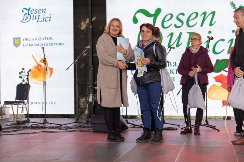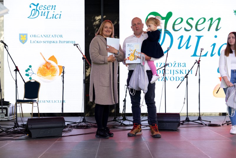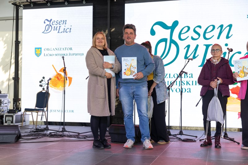 Objavljeno: 06/10/2025GOSPIĆ- U sklopu manifestacije Jesen u Lici dodijeljene su nagrade najboljim proizvođačima meda, sira, rakija, džemova i voćnih namaza, zimnice te sokova i sirupa. Stručna povjerenstva ocjenjivala su proizvode prema kvaliteti i dodjeljivala zlatna, srebrna i brončana odličja, a program je vodila lička glumica Tonka Mršić. Nagrade je uručila županijska pročelnica Ana Stilinović Rukavina. Na 23. ocjenjivanju meda najveći uspjeh ostvarili su proizvođači iz cijele Ličko-senjske županije. Zlatne medalje osvojili su Željko Nekić za kaduljin med, Mario Rožman za cvjetni med i dva meduna, Milan Starčević za medun, Dragan Bukovac za cvjetni med i medun, Darko Furlan za kestenov med i medun, OPG Perša za cvjetni med i medun, Danijela Štenta za kestenov med, Dino Dasović za lipov med, Berislav Šimunić za kaduljin med, Sanja Špehar za medun, Mijo Marazović za livadni med te Luka Krmpotić za lipov med. Brojni pčelari nagrađeni su srebrnim i brončanim odličjima, među njima i Bruno Devčić, Željko Malčić, Marinko Bronzović, Grga Rubčić, Jerko Šarić, OPG Pčelarstvo Borovac, Josip Jagar, Josip Duić, Zlatko Nikšić, Ivan Pavičić, OPG Biljana Rotvajler, Željko Ostović, Zdravko Rukavina, OPG Dražan Miščević, Ivica Crnković, OPG Pčelarstvo Brkljačić, Ivica Brozičević, Božo Nikšić, Dane Šop, Željko Luketić, Predrag Dotlić, Jurica Starčević i Slavko Vuković. Na 19. ocjenjivanju sira i mliječnih proizvoda šampion kvalitete postao je Igor Tomaić iz Sirane Runolist za gacki tvrdi sir od kravljeg i ovčjeg mlijeka. Zlatom su nagrađeni i njegov meki kravlji sir škripavac, OPG Lisac za škripavac, OPG Miškulin za domaći kefir i basu, Sirana Kolačević za jogurt basu te Sirana Vegium za škripavac. Rakije i likeri ocjenjivani su 17. put, a Milan Dotlić odnio je zlato za likere od drijena, divlje kruške, maslačka, trešnje, maline i oraha. Za likere od trnjine, aronije, dunje i rakiju od šljive osvojio je srebro, a broncu za liker od mušmule, rakiju od jabuke i šljivovicu. Predrag Dotlić nagrađen je srebrom za rakiju od šljive, a Antonija Dujmović broncom za rakiju od kruške tepke. U kategoriji džemova, pekmeza i voćnih namaza šampion kvalitete i zlato pripali su OPG-u Milinković za voćni namaz od šipka, dok su zlatom nagrađeni i njegovi proizvodi od bazginih bobica, drijena i šljive. Zlatna odličja osvojili su i OPG Predrag Dotlić (voćni namaz od šipka), OPG Ivan Maras (namaz od borovnice), OPG Dragan Šop (namaz od jagode i džem od maline) te OPG Lucija Sekula (namazi od kupine, šumskog voća i jagode). Srebrne medalje pripale su OPG-u Dotlić za namaz od sibirske borovnice, OPG-u Ajda za džem od aronije, Anki Miščević za džem od marelice i OPG-u Ilija Bogić za namaz od sibirske borovnice. Brončana odličja osvojili su OPG Naša Farma za džem od maline i OPG Štenta za namaz od kestena. Prvo ocjenjivanje zimnice donijelo je zlato i titulu šampiona kvalitete Anki Miščević za lovačku salatu, dok je na prvom ocjenjivanju voćnih sokova i sirupa OPG Milinković osvojio zlato za sirup od drijena. Rezultati još jednom potvrđuju bogatstvo i raznolikost ličkih proizvođača, čije su delicije i ove godine dobile priznanja stručnjaka i publike.