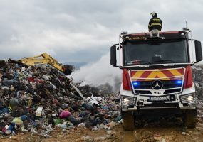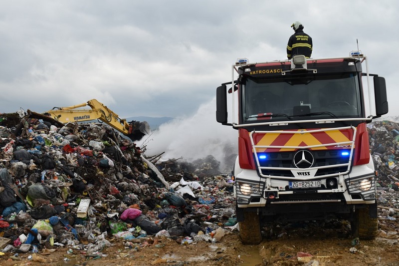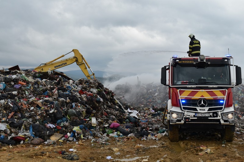 Objavljeno: 28/09/2025GOSPIĆ- Stara je i mudra izreka da čovjek kada se jednom opeče puše i na hladno. Tako je bilo i tijekom ovoga vikenda kada je na gradskom deponiju, odnosno gradskom smetlištu Rakitovac planuo požar. Počeo je gorjeti komunalni otpad prikupljen na Rakitovcu u posljednjih oko mjesec i pol dana. Prije toga postavljen je sloj zemlje po kompletnom brežuljku smeća debeo 40-ak centimetara i kroz njega se ovaj požar nebi smio probiti. Na požarištu danas zatičemo Marka Popovića, zapovjednika Javne vatrogasne postrojbe Gospić govori nam da su odmah po dojavi, u subotu posljepodne oko 17 sati, na požarište izišle dvije ekipe, u tom trenutku bilo je zahvaćeno stotinjak kvadratnih metara na vrhu brijega s otpadom. Vrlo brzo Komunalac je osigurao radni stroj kako bi on prekopavao hrpe smeća, a vatrogasci to polijevali vodom. Tijekom noći po požarištu je izliveno oko 120,000 litara vode i spriječeno je daljnje širenje. Vatrogasci sada rade pravi rudarski posao, kako stroj iskopa dio otpada oni ga zalijevaju. Izmjenjuju se vozila tako da se konstantno vodom polijeva požarište. Na požarište je danas oko podne došao i gradonačelnik Darko Milinović zajedno sa svojim zamjenikom Ivicom Kovačevićem i suradnicima. Gradonačelnik Milinović umiruje građane i odbacuje bilo kakve sumnje da se radi o zapaljenju opasnog otpada. Zahvalio se vatrogascima i čestitao im što su bdjeli cijelu noć. „Još jednom koristim situaciju i počasnom građaninu Ličko-senjske županije upućujem poruku odavde dajte već jedanput napravite barem mali koračić u zbrinjavanju onog opasnog otpada. Gospić i Ličko-senjska županija takav odnos nisu zaslužili. Ako može biti na čelu projekata za razvoj Slavonije pozivam premijera da stane na čelo povjerenstva koje će već sutra početi zbrinjavati opasni otpad“- kaže Milinović.