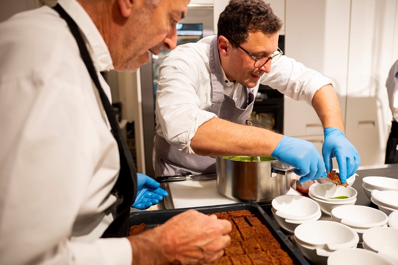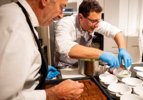 Od velebitskog primorja do srca Like – namirnice su pomno birane, a svaki slijed pričao je priču o tradiciji i načinu života najveće hrvatske županije koja se prostire s obje strane Velebita. Za početak finger food od podvelebitskog škampa s polentom i prahom divljeg koromača te potočne pastrve s hrenom, sedaninom, drijenkom i prosenom kašom. Potom bika i topli kruv pa potkriža – ječmena pogača na jogurtu natopljena u temeljcu od pijetla s velouteom od divljeg bilja. Slijedio je hrbat vepra s jusom od borovnica i „kaparima” od medvjeđeg luka. I šećer za kraj – salenjak punjen pekmezom od šljive bistrice i hrustavac od ulja sjemenke šljive. Uz svaki slijed pila su se vina poznate novaljske vinarije Boškinac, a uz desert lički destilati. Bilo je to jedinstveno hedonističko putovanje Likom i podvelebitskim primorjem.