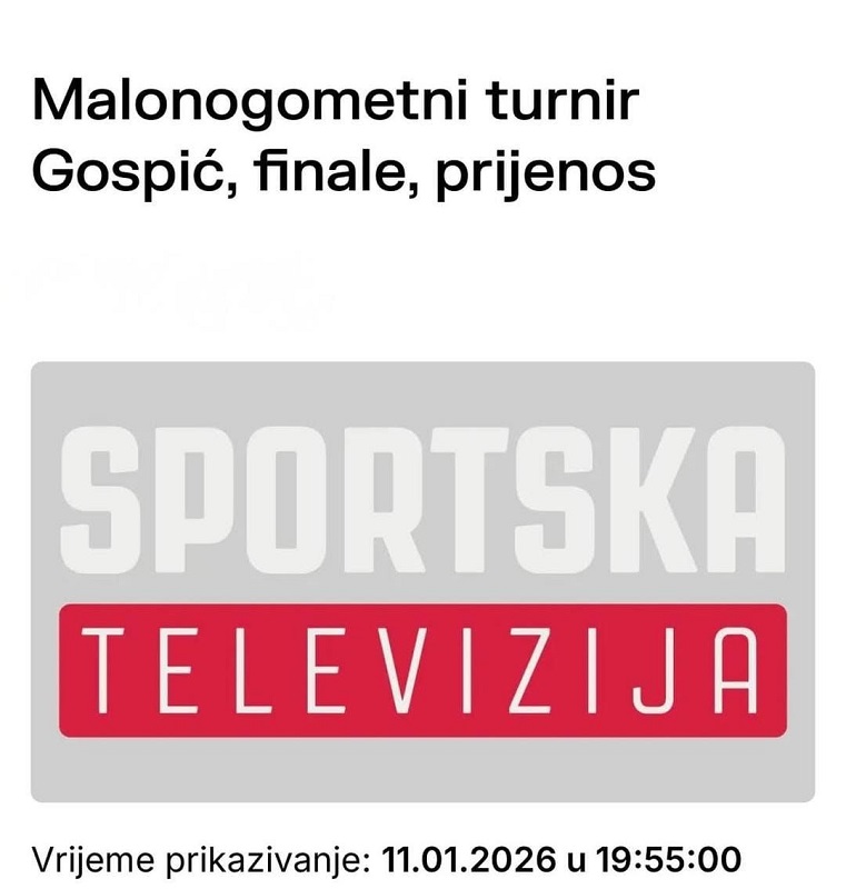 Objavljeno: 11/01/2026GOSPIĆ- Nakon 10 dana odličnog nogometa veliki Zimski malonogometni turnir u Gospiću došao je do finala. A nakon uzbudljivih sinoćnjih utakmica poznato je da će danas u finalu od 20 sati igrati OPG JOSIP VRKLJAN LOVINAC i CB EXTREME. Inače cijeli današnji program, a prije finalne utakmice odvijat će se po ovome rasporedu: